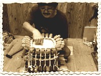 (原木より製作して、最後の皮張り・仕立て迄一人で出来る人を三弦師と言います。)